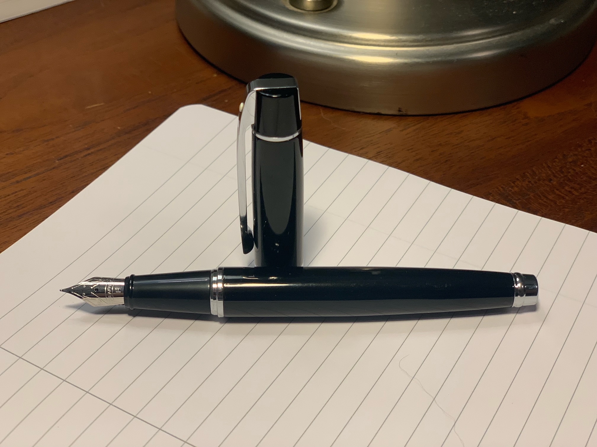 So, here goes. I bought this pen new online for a total of $23.95, including shipping costs. I was initially surprised that an inexpensive pen would look nice, have a solid feel, and come with ink converter and two cartridges – the type of service I would expect from a luxury pen company. However, once I started writing with the pen, it didn’t take long for me to realize that it is not a luxury pen.